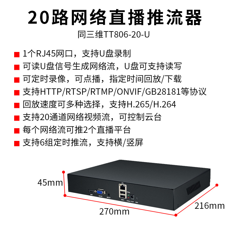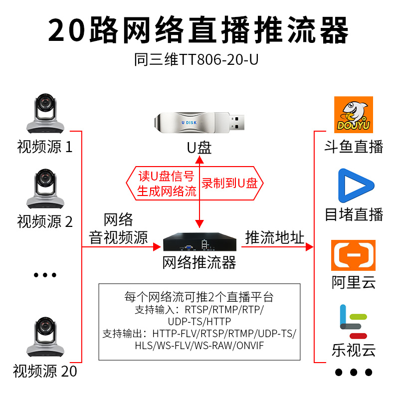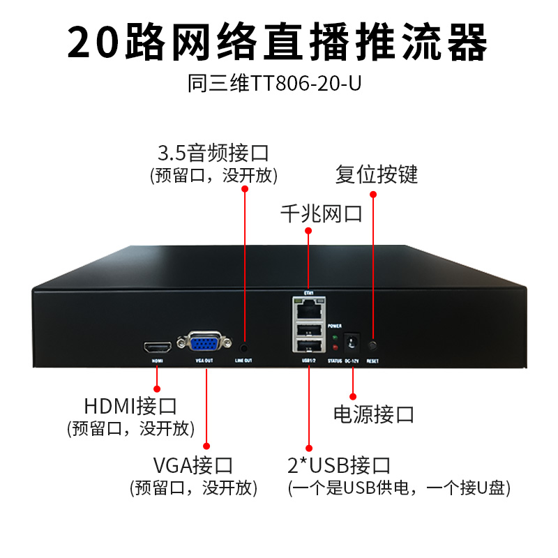 同三维TT806-20-U 20路网络直播推流器,支持U盘视频