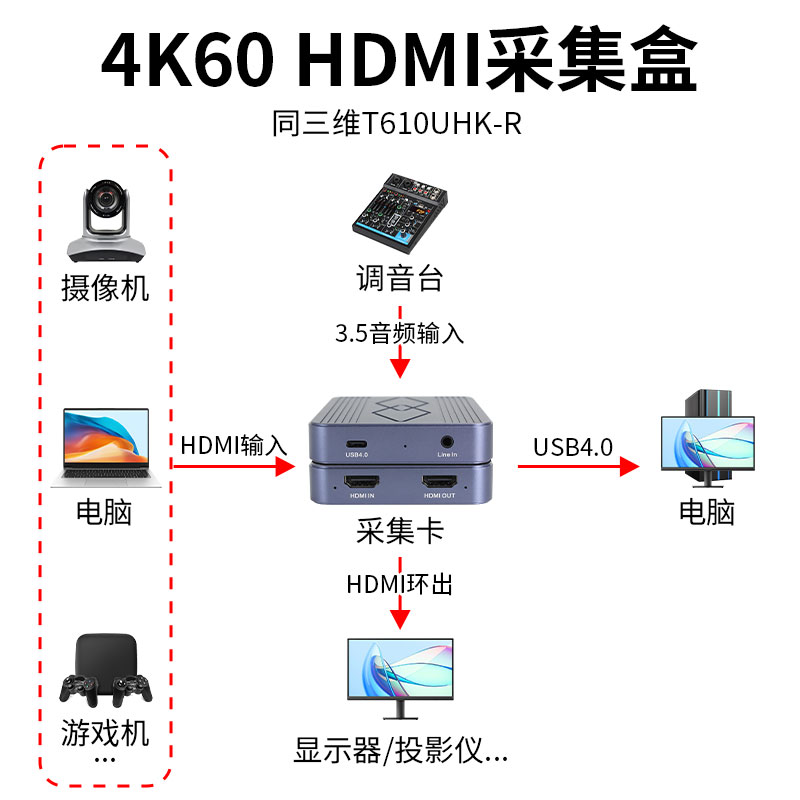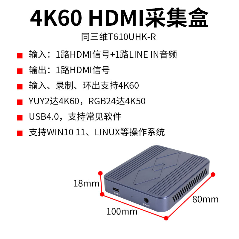 同三维T610UHK-R USB4.0 4K60 HDMI采集卡
