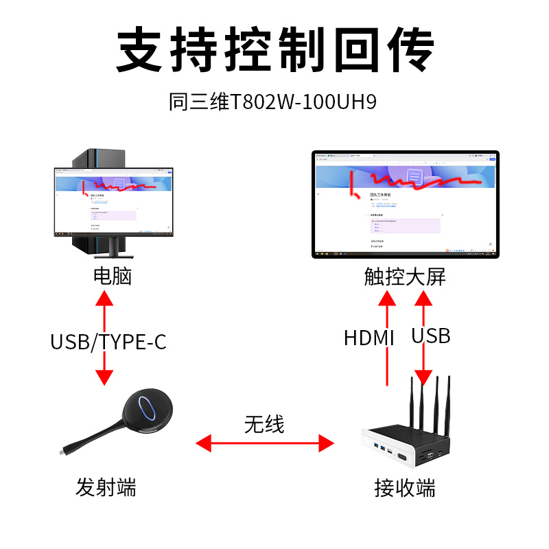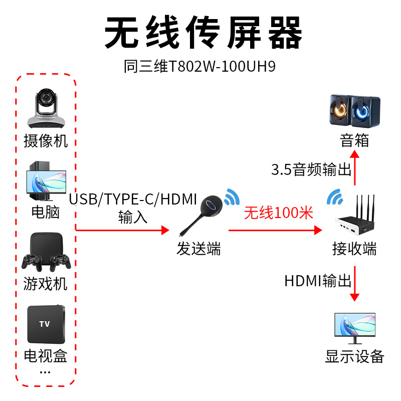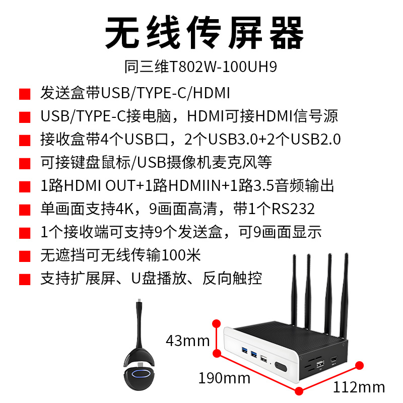 同三维T802W-100UH9(100米USB/TYPE-C/HDMI三合一无线投屏)