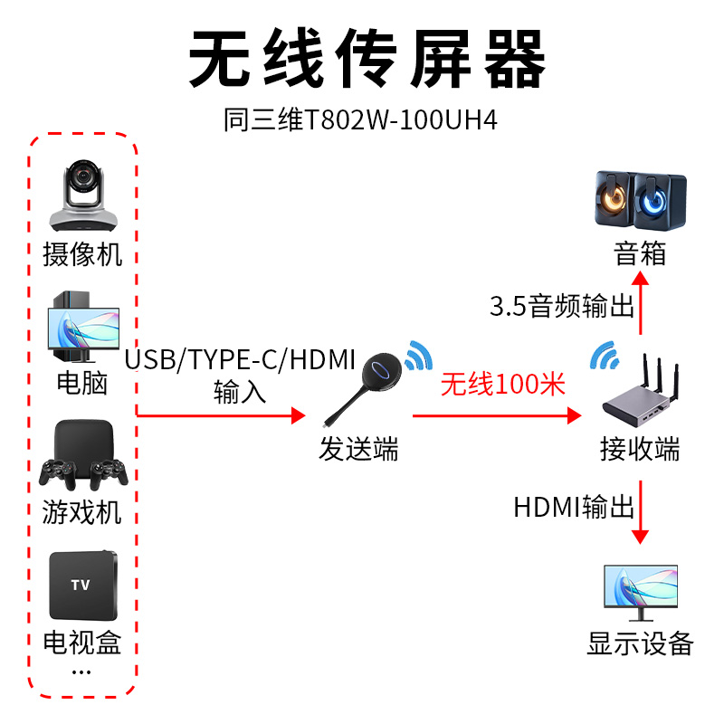 同三维T802W-100HU4(100米USB/HDMI无线投屏)