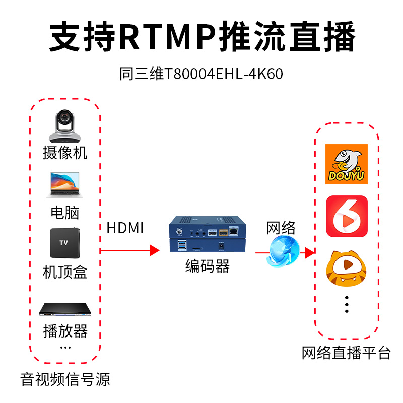 | 产品型号 | 同三维T80004EHL-4K60 超清4K 60帧编码器 | ||
