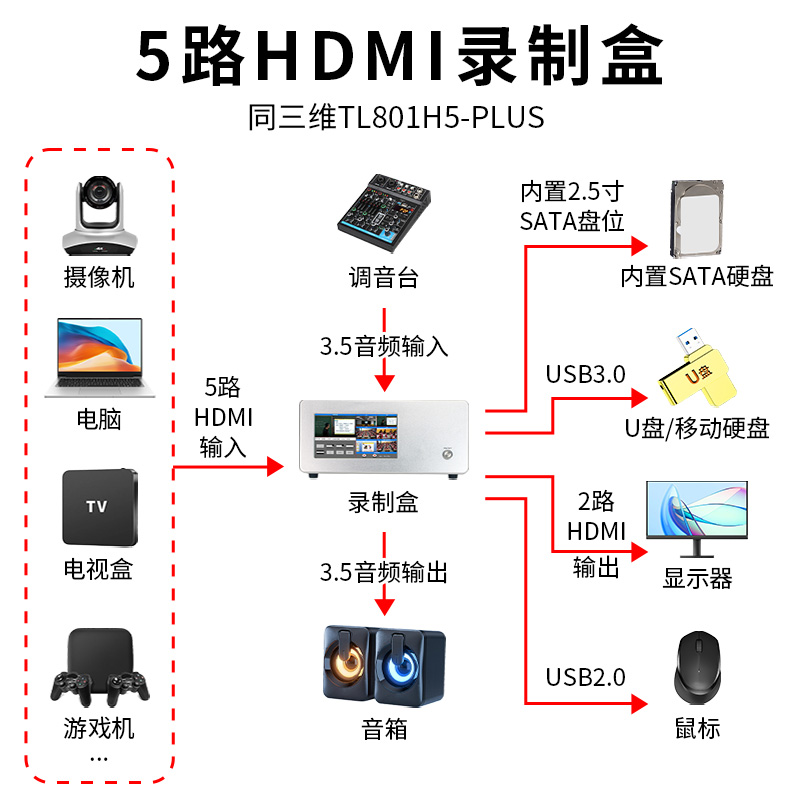 同三维TL801H5-PLUS 5路HDMI录制盒