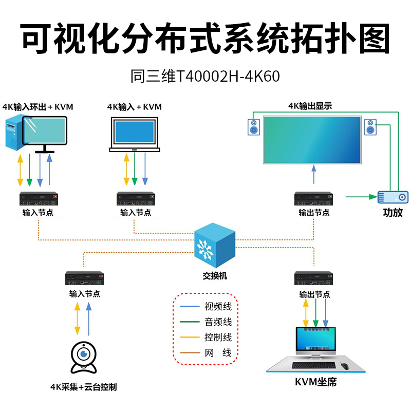 同三维T40002H-4K60具备音视频IP传输/切换/拼接,KVM坐席协作,视频会议融合,环境设备控制等功能;配合完善的可视化管理软件实现统一管理,远程调度,指挥协同。可广泛应用于图像中心、应急指挥、会议通讯、运营管理、生产调度等场景,为用户提供高度集成的可视化解决方案。